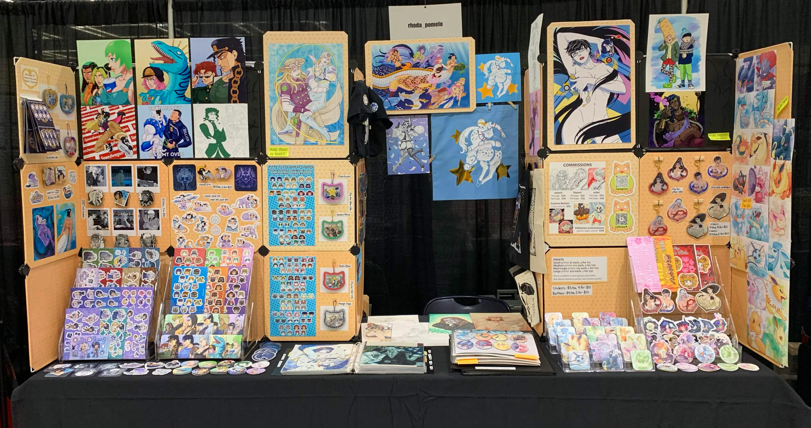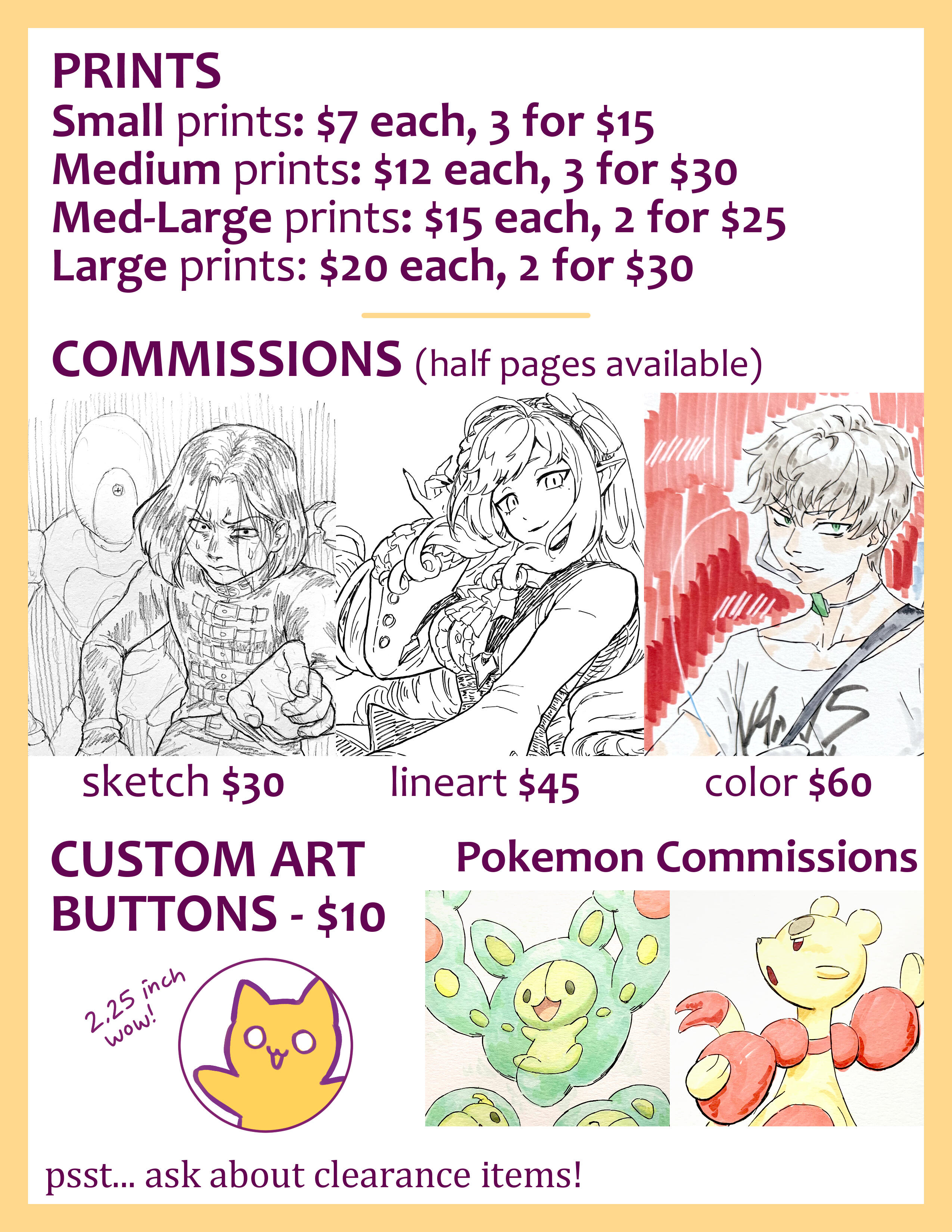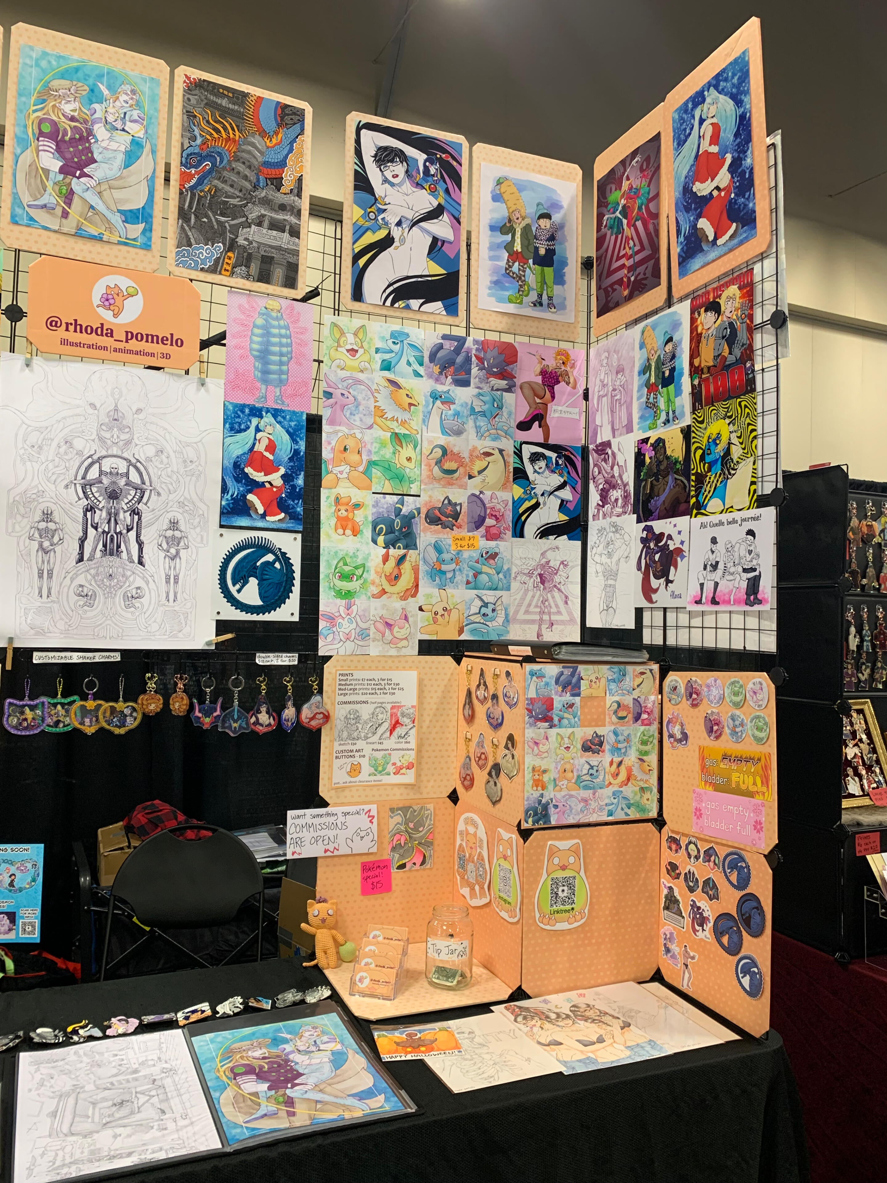 Convention commissions will be available on a first come, first serve basis. For other commissions like digital illustrations and animations, visit https://rhodapomelo.carrd.co/